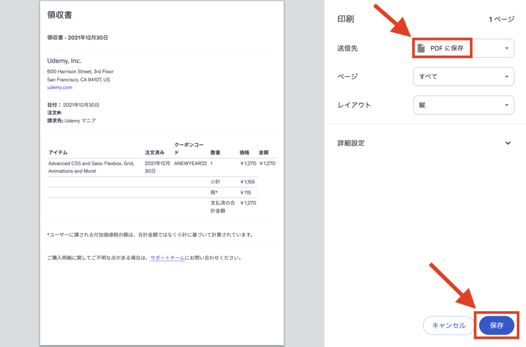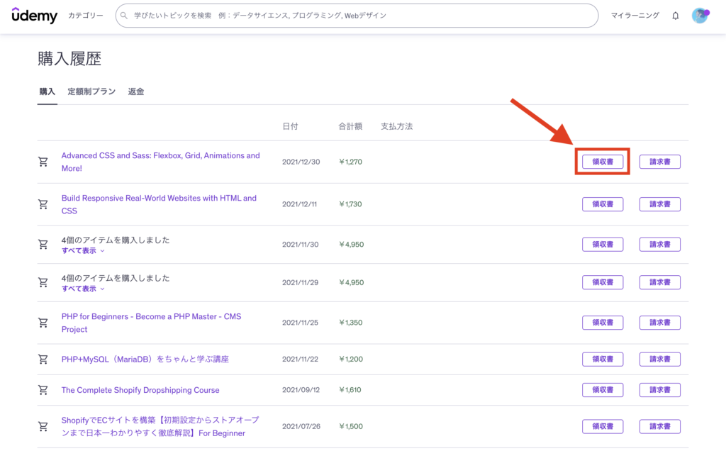 Udemyの買い切り講座で領収書をPDFで発行する方法