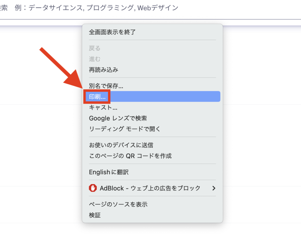 PDFで領収書を発行する場合は、右クリックして「印刷」をクリックします。