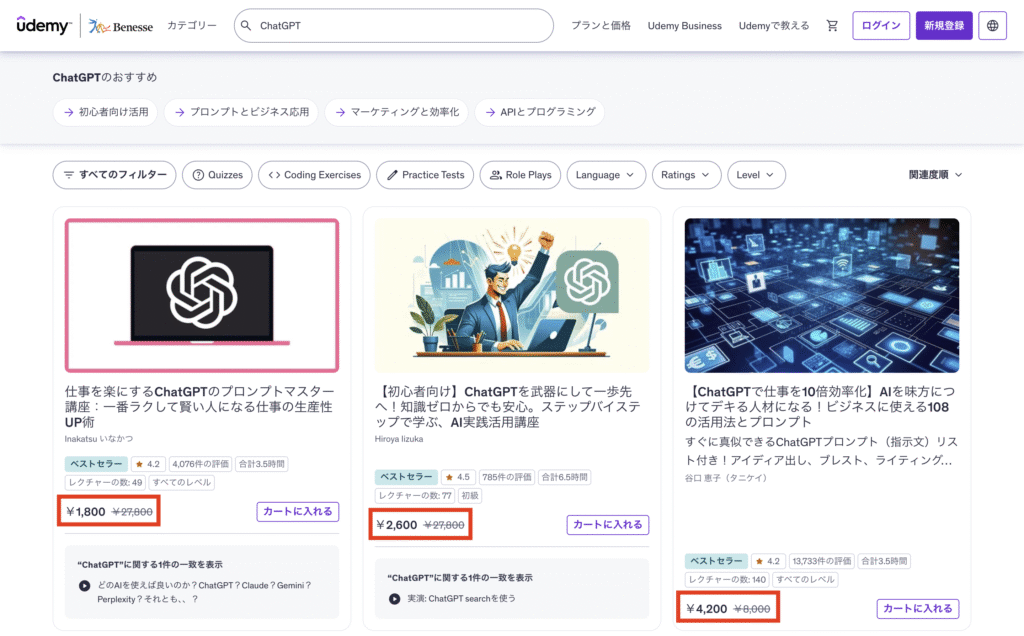 数万円する講座が1,000円台で購入でき、Udemyを始めるうえで最もお得なタイミングと言えます。