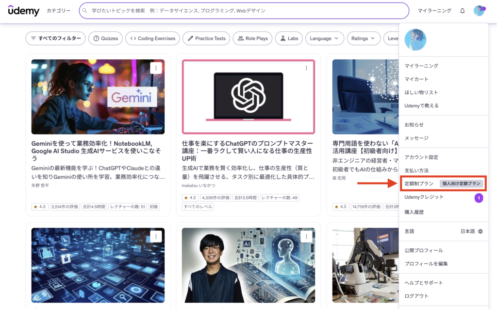 最新の対象講座やプラン内容は、Udemy公式ページで確認できます。