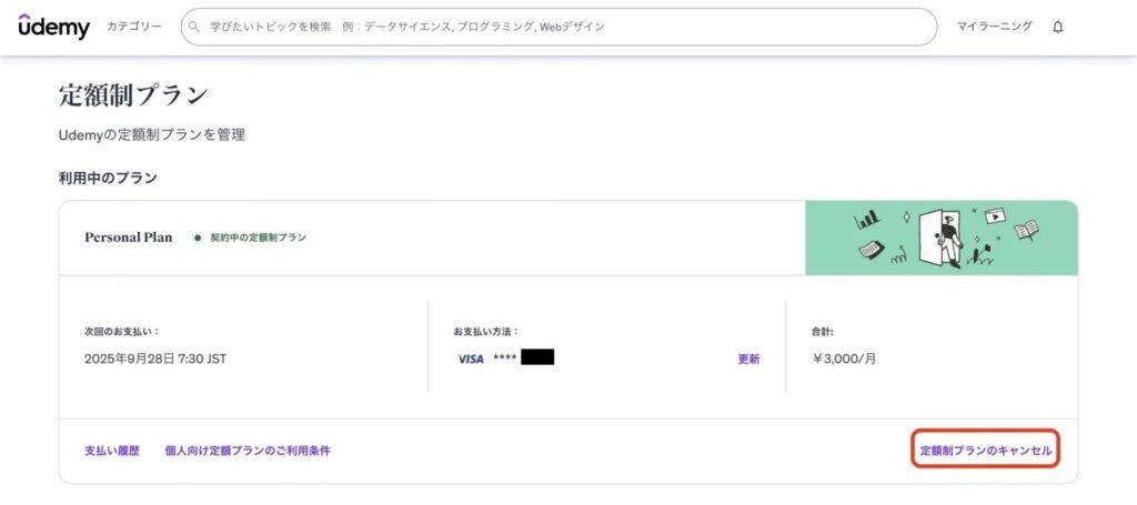 Udemy学び放題の解約方法