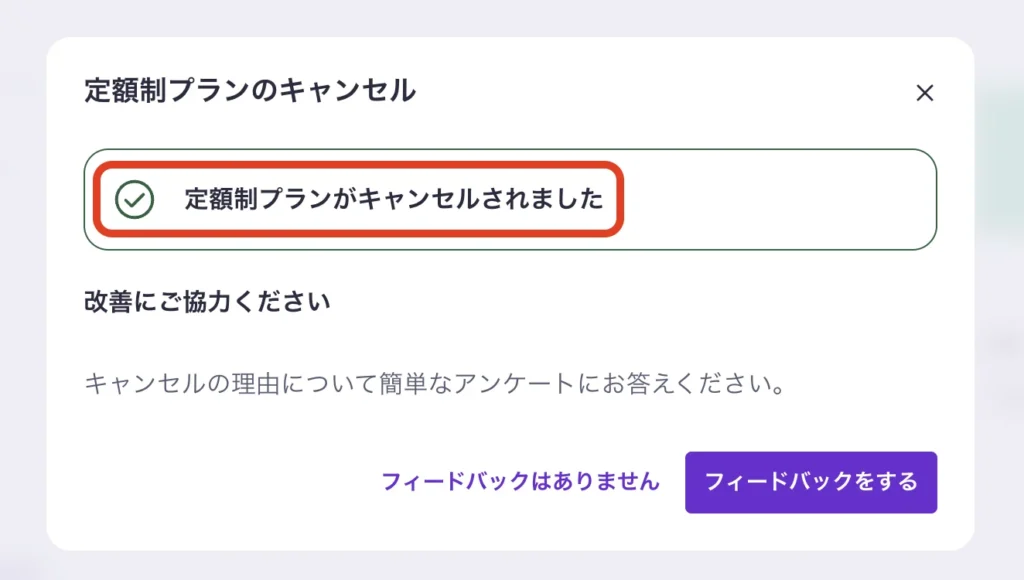 解約後は、定額制プランの管理画面から