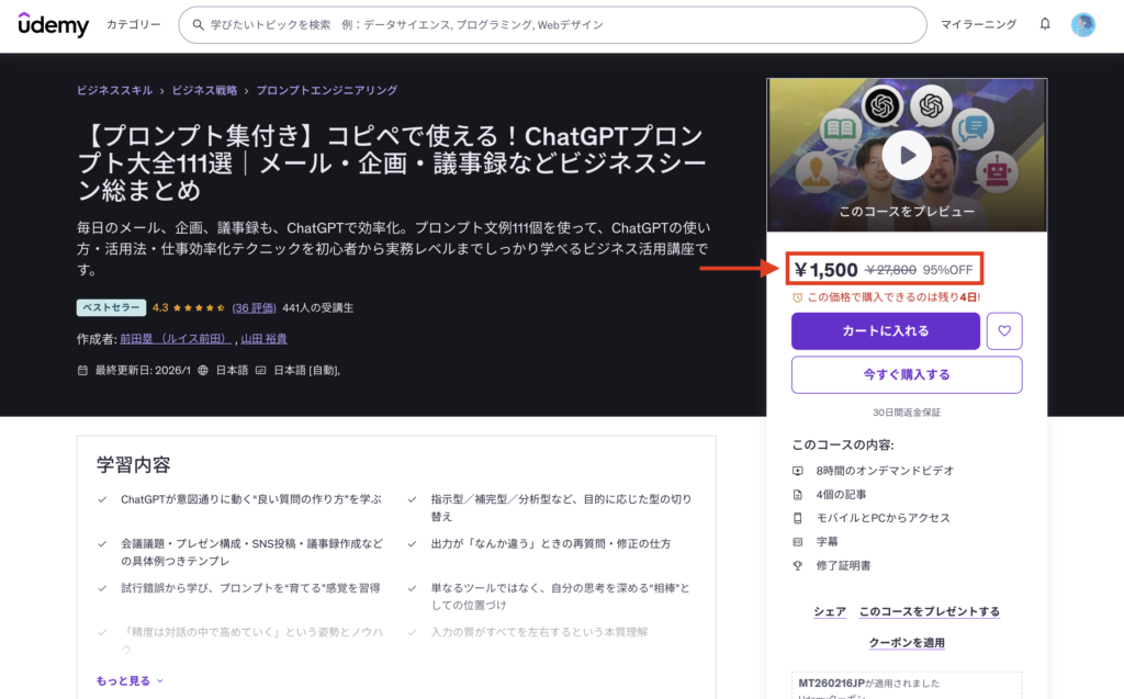 最新の対象講座やプラン内容をUdemy公式ページで確認しておくと判断しやすくなります。